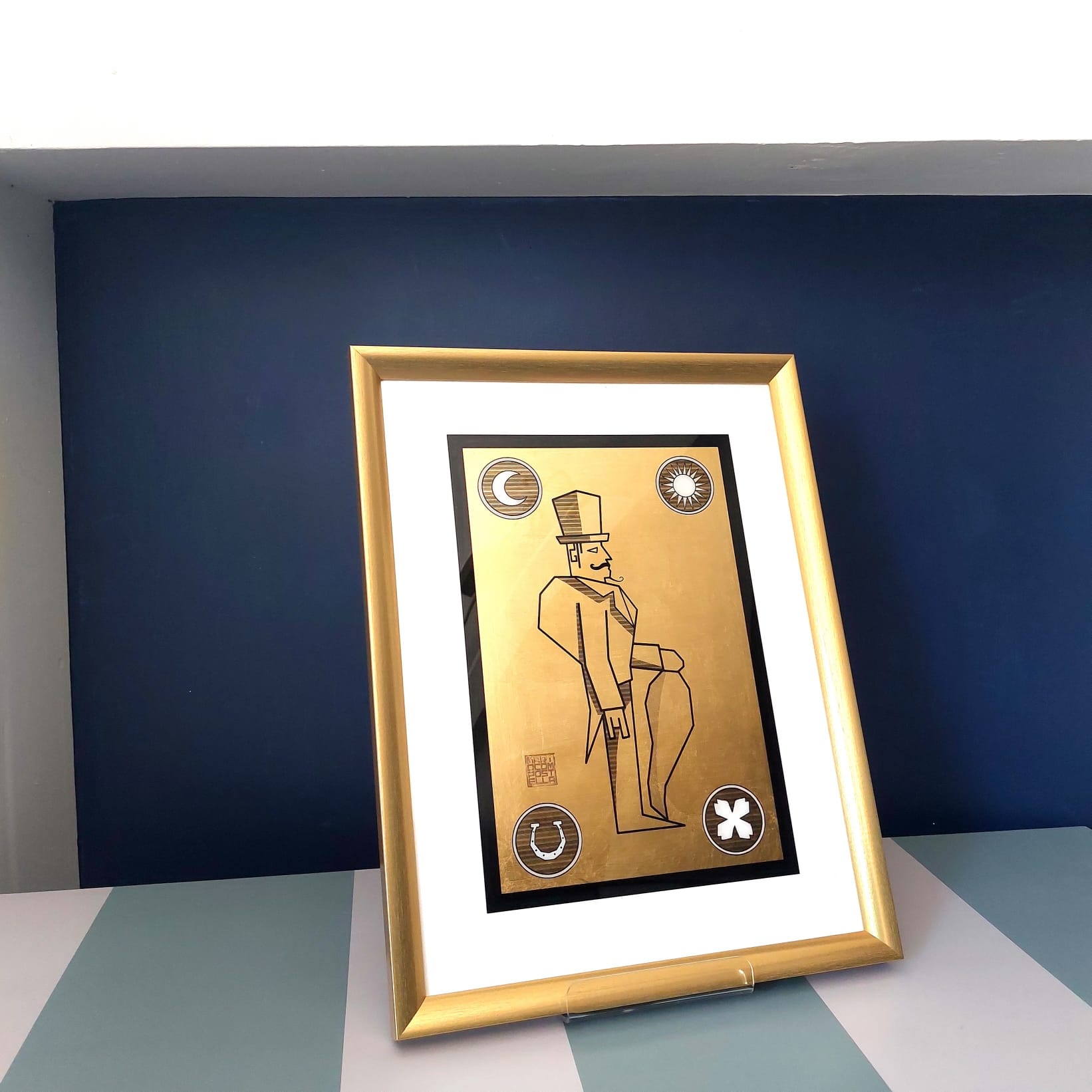 “Il Sigillo della Fortuna è un quadro dal forte valore simbolico. Stampato su plexiglass e impreziosito da una decorazione in foglia d’oro, combina elementi portafortuna come il ferro di cavallo, il quadrifoglio, il sole e la luna. Un amuleto moderno e un elemento di design perfetto per la casa o l’ufficio.”