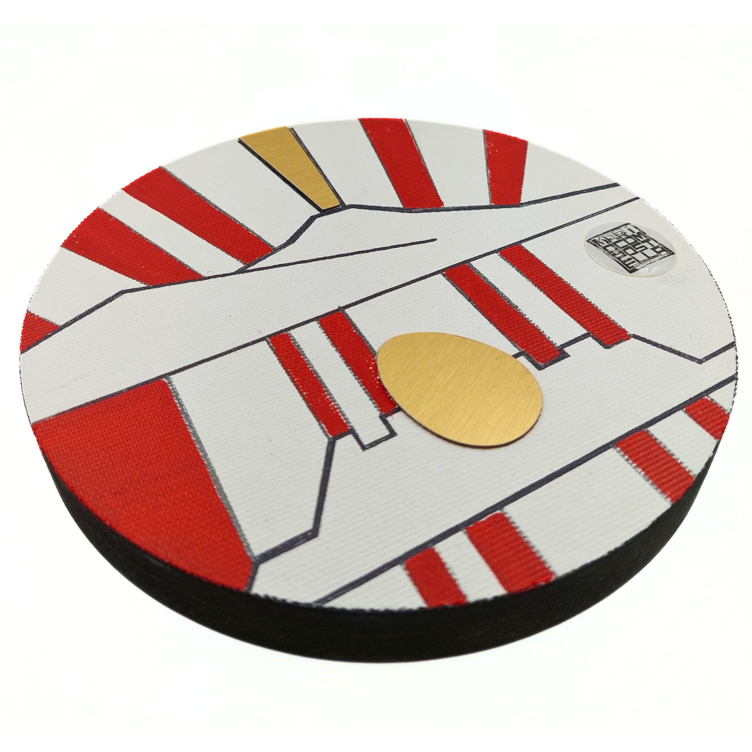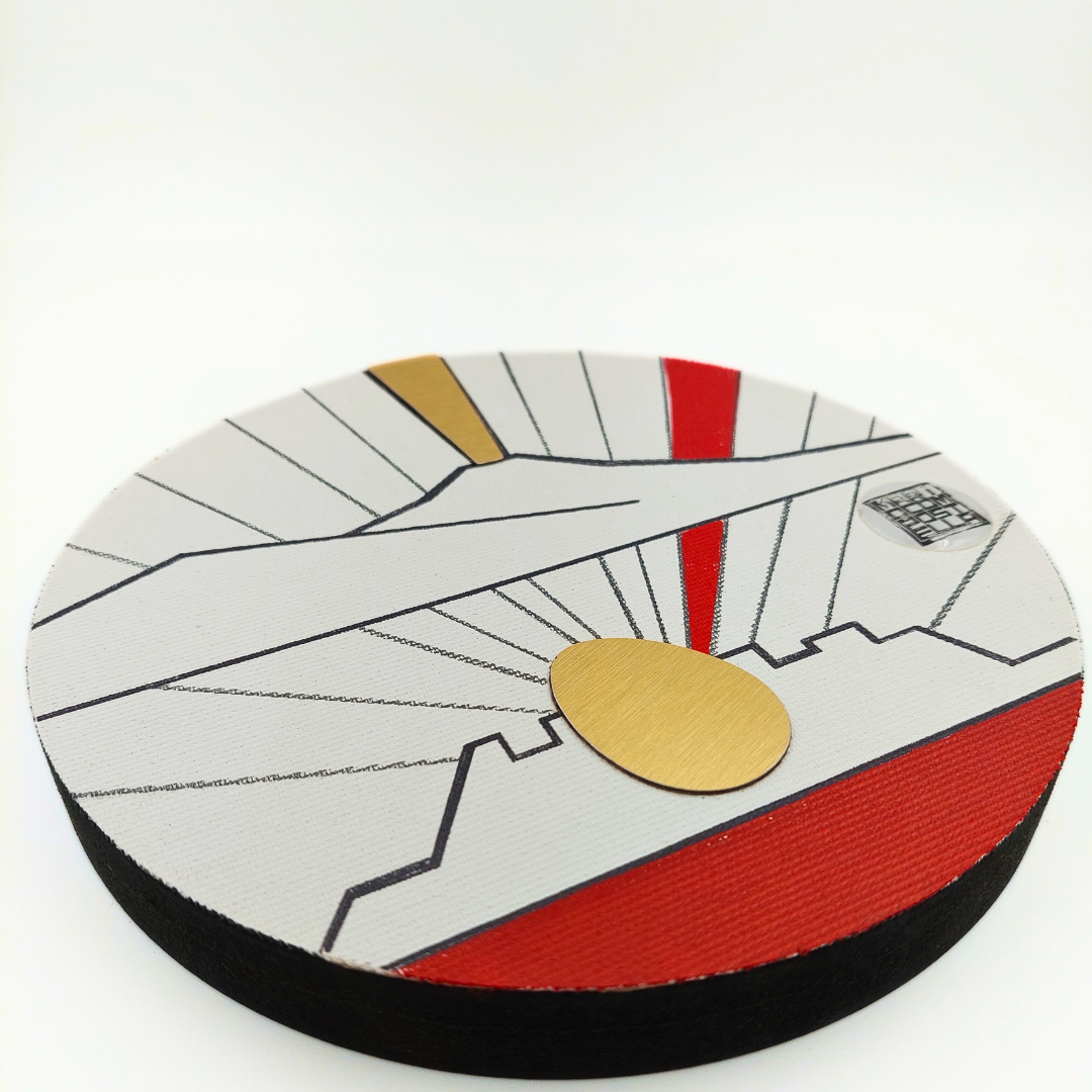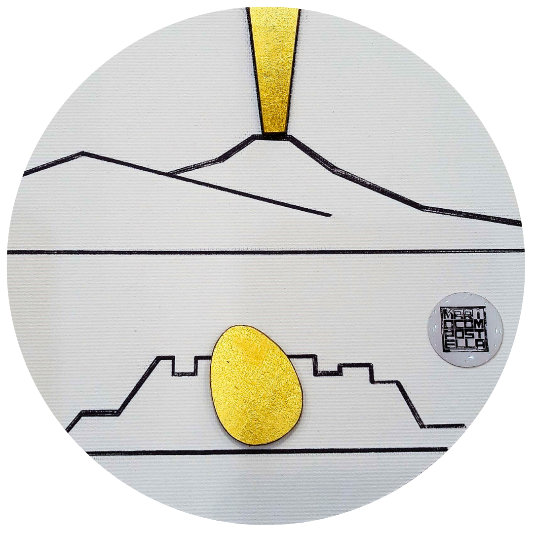 Nel cuore pulsante del mito di Neapolis prende vita quest’opera. Un uovo cosmico stilizzato, impreziosito da un laminato dorato che cattura la luce e lo sguardo. Il bordo in MDF, dipinto a mano con un nero intenso, crea una cornice che ne esalta il contrasto e la forza espressiva. Scopri le tre varianti: un’esplosione di energia con tutti i raggi rossi, un focus potente con un singolo raggio scarlatto, oppure un’eleganza eterea in bianco con preziosi dettagli dorati.