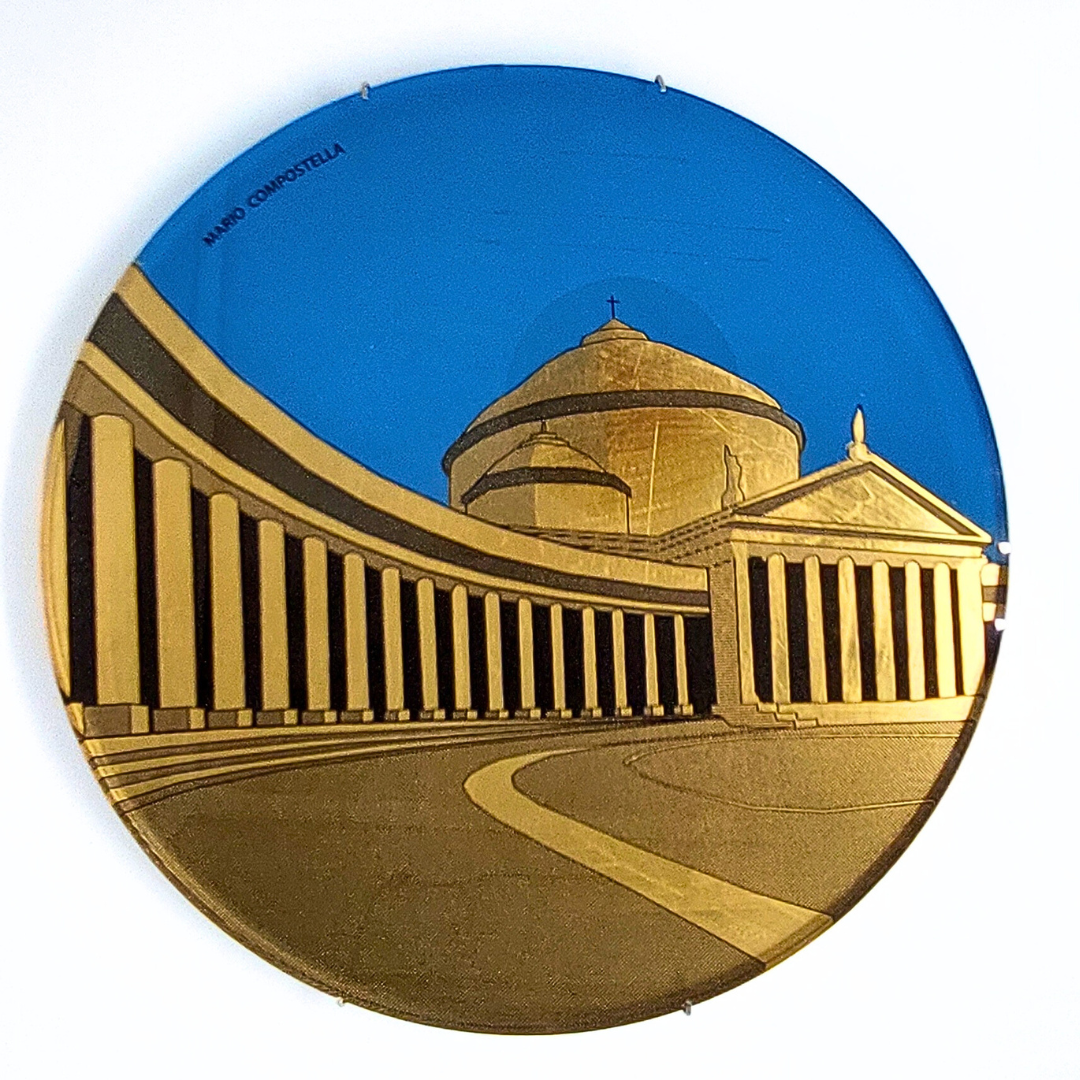 Questo progetto, intitolato “Città d’Italia”, nasce dalla volontà di unire la ricchezza delle tecniche tradizionali con l’innovazione del linguaggio moderno. Il disegno geometrico e minimale cattura l’essenza iconica di Piazza del Plebiscito. Una stampa digitale su plexiglass fa da base a una successiva decorazione manuale con preziosa doratura a foglia. La trasparenza del plexiglass, unita alla brillantezza metallica, conferisce a quest’opera una luminosità e una preziosità sorprendenti.