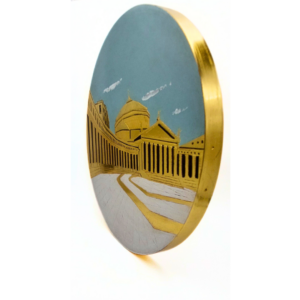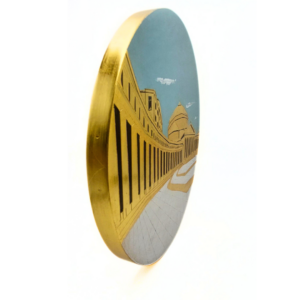 Realizzato con maestria attraverso le antiche tecniche della doratura a guazzo, dell’incisione e della lucidatura manuale, questo quadro cattura la maestosità della Basilica di San Francesco da Paola e l’imponente colonnato che delimita la parte superiore di Piazza del Plebiscito. La ricca doratura conferisce all’opera un aspetto di vibrante luminosità, mentre le incisioni precise e le sapienti lucidature aggiungono profondità e dettagli minuziosi. Ogni elemento, dalla rappresentazione architettonica della Basilica e del colonnato fino alla pavimentazione della piazza, è curato con la massima attenzione. Questa piazza, inaugurata nel 1846 per volere di Ferdinando I, re delle Due Sicilie, è uno dei luoghi più iconici e amati della nostra città.