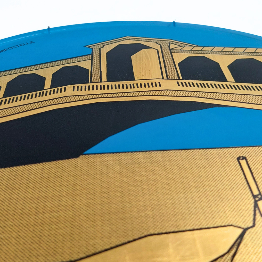 Opera del progetto “Città d’Italia” che fonde tecniche tradizionali e moderne: stampa digitale geometrica e minimale del Ponte di Rialto su plexiglass, decorata a mano con doratura a foglia.