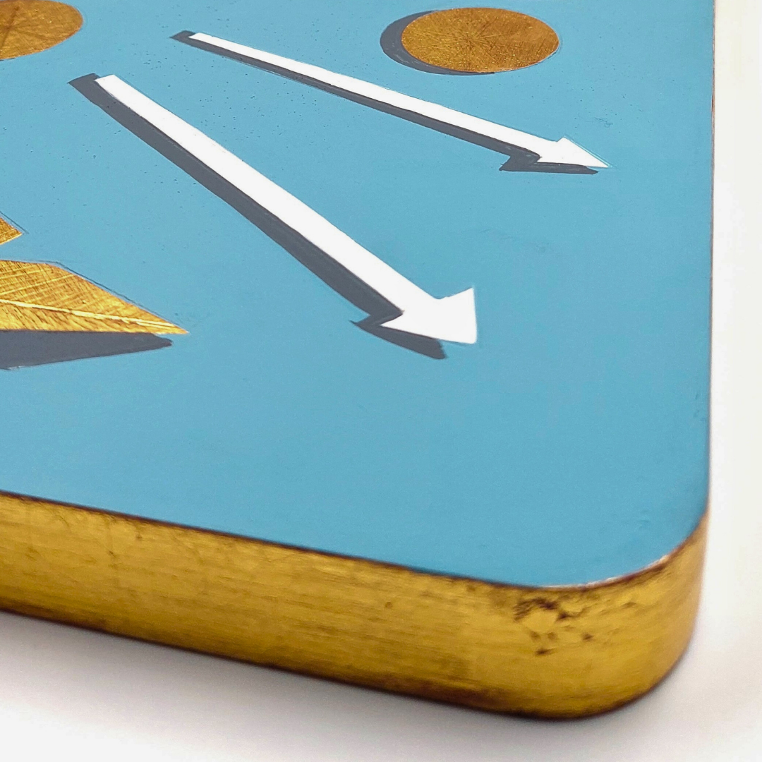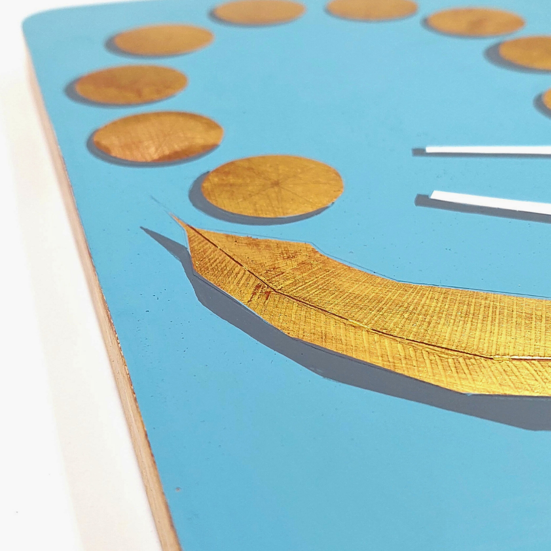 - Materiali: Oro a foglia 22 carati, argilla, colori ad acqua, gesso, resina naturale, MDF.